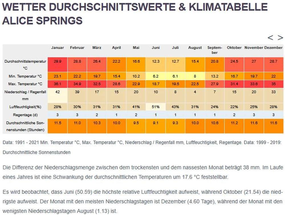 KLIMA für ALICE SPRINGS, AUSTRALIEN, Quelle climate-data.org